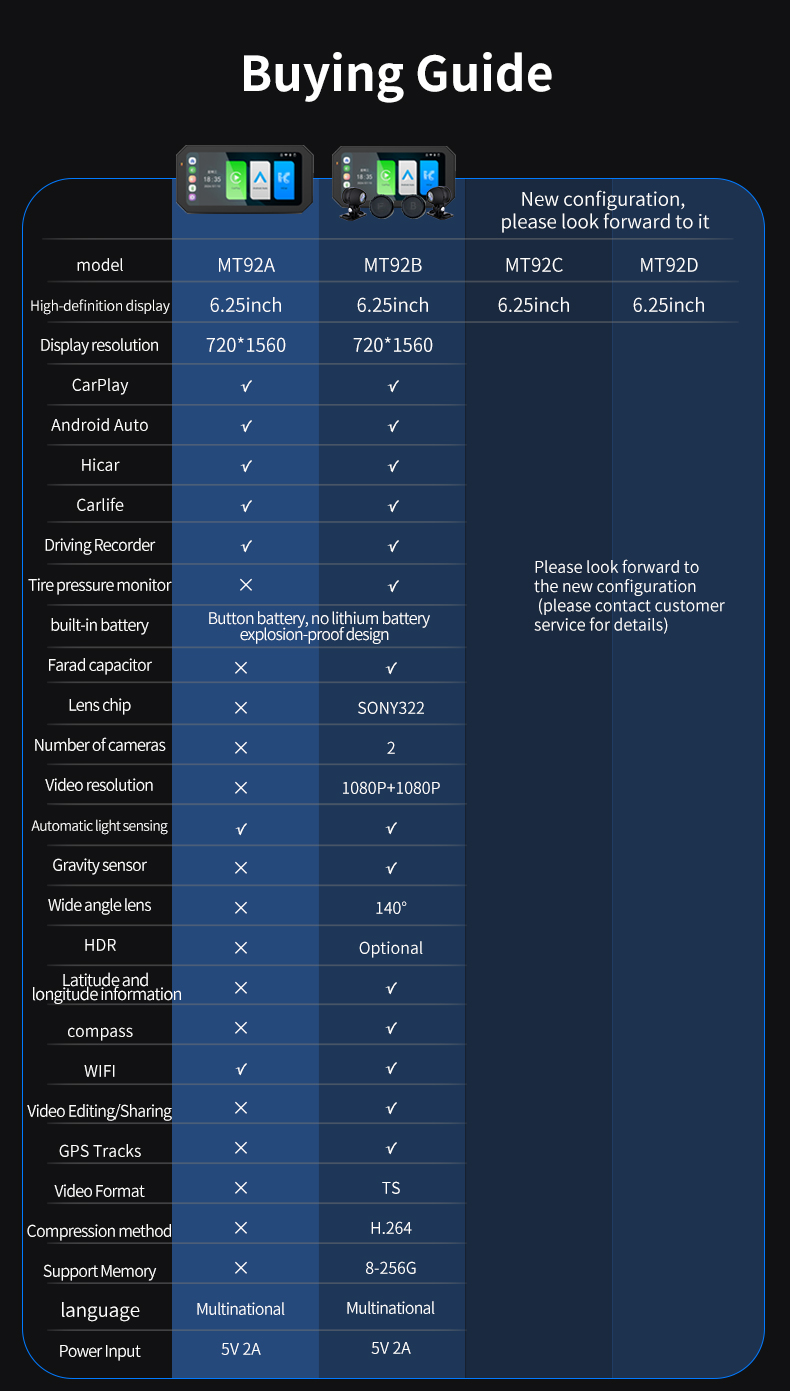 | Product Name with Model Number | Motorcycle Carplay Dash Cam MT92B |